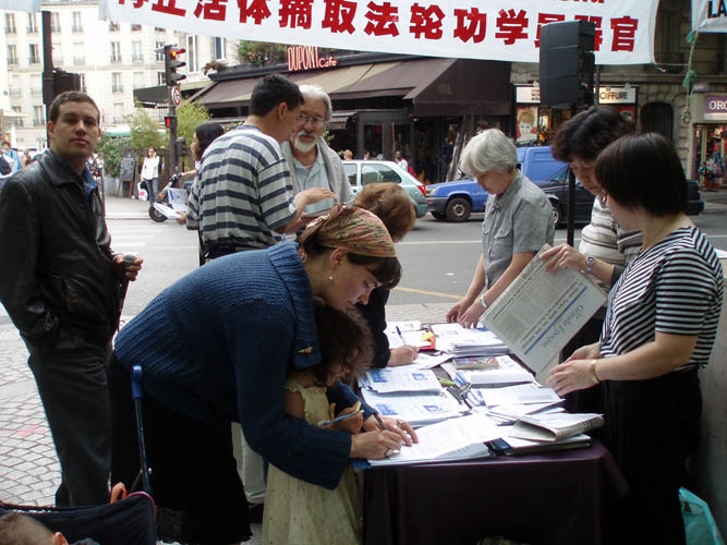 一位法国学生说:“我觉得这是不可接受的,这种事在我们这个世纪是不应该发生的。从纳粹第二次世界大战后就未曾见了,摘取器官对我来说是绝对不能容忍的,所以我在请愿书上签了名。对于青年人来说,应该为了未来做些努力。”
