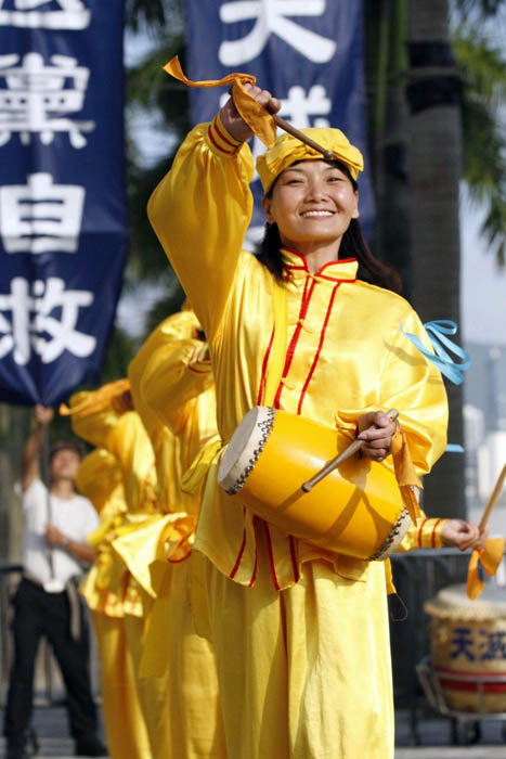 【明慧网2006年5月7日】2006年4月28日,我们一团41人,从台湾飞抵香港,参加声援千万人退出中国共产党的活动。我们负责的项目是打腰鼓,深知此行任务特殊而神圣,不管在飞机上或游览车里,我们这个团体安安静静的,没有任何嬉戏、笑闹声,与一般旅游团体明显有别。