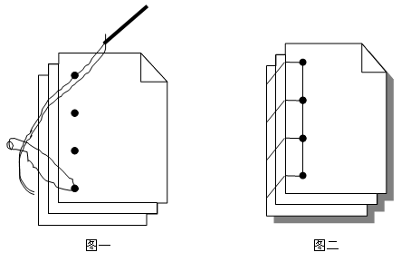 对于较厚的资料,如书籍,如果骑马钉不能钉穿,则可以直接用线缝。