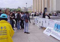 一位法国男士看到揭露中共劳教所、集中营迫害法轮功学员的图片展板后,感到现在中国发生的迫害太可怕,他不停的说:“太可怕了,我害怕到中国去。”他说:“你知道7月份,我将要去中国和我的未婚妻结婚。现在我害怕去中国,为什么会这样!这迫害让人伤心。”