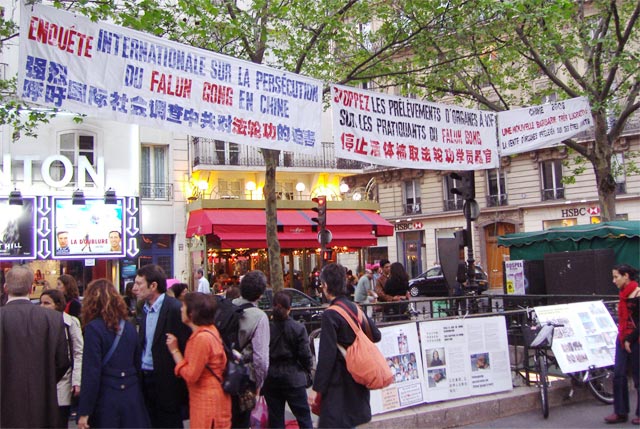 ![]() 来了解真相的法国民众 | ![]() 在巴黎6区Odéon揭露中共暴行 |