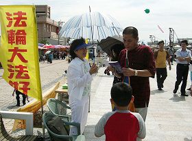 法轮功学员还表示,许多台湾商人跑到大陆做生意,必须对共产党的邪恶本质有正确的认识。《九评共产党》这本书,就是提供正确的资讯,让大家了解共产党的真面目。法轮功学员希望大家了解中共的邪恶,一起来支持正义反迫害。