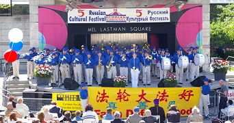 法轮功盛大游行传播“真善忍”展现东方神韵