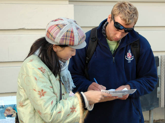 【明慧网2006年6月12日】2006年6月9-10日,新西兰法轮功学员于首都惠灵顿举行两天活动,以真人模拟演示的方式,揭露和抗议中共活体摘取法轮功学员器官的残暴罪行。学员们和支持者还在惠灵顿市中心举行了抗议游行,同时声援1100万勇士退出中共。 活动受到当地民众的关注,很多人都谴责中共的暴行。
