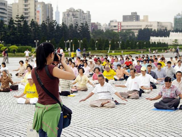 期间,因离中正纪念堂不远的地方有别的抗议集会,有几位记者路过此地也被这平和的炼功画面所吸引,纷纷取出相机按下快门,一位来自加拿大的自由撰稿记者说,在加拿大看过法轮功,觉的他们真的很了不起。一位知名杂志的摄影记者说,附近的抗议活动太无趣,他特地跑过来并拍了很多学员炼功的特写画面。