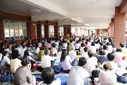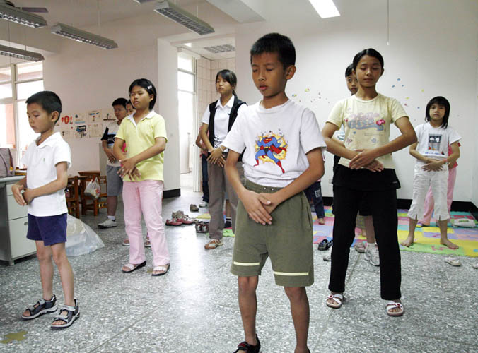 ![]() 在云林县斗六小学的一日学法交流 | ![]() 认真学法的银发夫妇 |