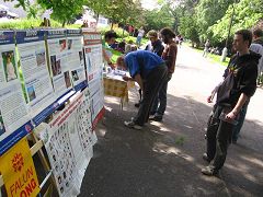 【明慧网2006年6月16日】2006年5月的最后一个星期天,法轮功学员参加了在捷克布尔诺(Brno)的莫瑞比恩(Moravian)市中心举行的抗议节(Protest Festival)。这个节日的主要目地是提供民众说出社会上流行问题的机会。参加人士中也包括一些致力于人权问题、环境生态及动物权利的活跃人士。