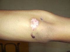 ![]() 男孩的胳膊等处留下的伤疤 |
