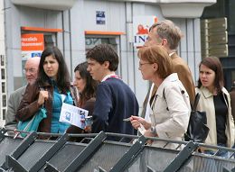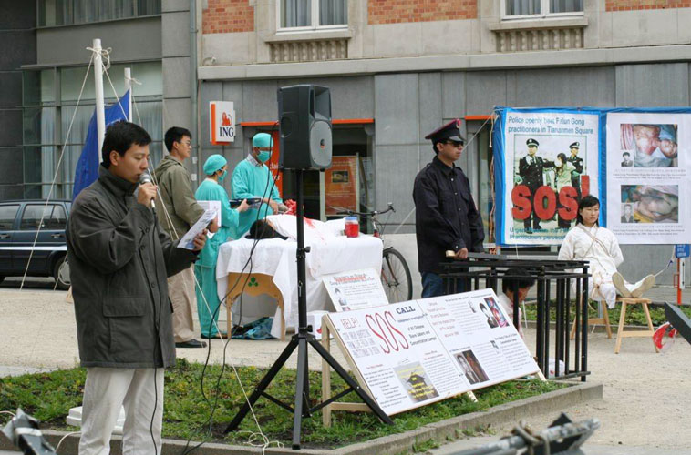 【明慧网2006年6月17日】2006年6月15-16日,欧盟25国首脑在比利时首都布鲁塞尔(Brussels)召开为期两天的高峰会议。法轮功学员在欧盟总部大厦所在地——舒曼广场旁举行活动,以真人模拟的方式揭露中共对法轮功学员的残酷
