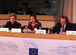 【明慧网2006年6月2日】2006年5月30日下午4点半,在欧洲议会举办了“中国宗教自由全貌(Global View of Religious Freedom in China)”新闻发布会,由欧洲议会EEP-ED党团的人权发言人西蒙·康威尼(Simon Coveney)先生主持,人权无疆界国际组织、西藏之友、世界维吾尔族大会、国际人权协会(香港观察)、比利时法轮大法协会等主办。会议的组织者呼吁中国政府邀请联合国有关宗教信仰自由的特使来评估中国宗教自由的情况并有权调查关押所有不同的信仰者的劳教所。
