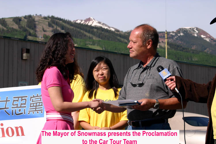 Snowmass市长颁发褒奖给法轮功学员讲真相的“汽车之旅”。