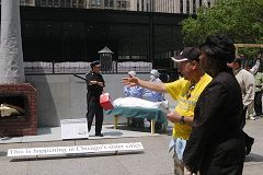 毕业于芝加哥大学的王文怡女士既是法轮功学员也是医生。面对这样紧急的情况,她曾在4月20日白宫欢迎胡锦涛的仪式上大声向布什和胡锦涛喊话。在今天的集会上,王文怡女士再度呼吁人们关注发生在中国的屠杀。