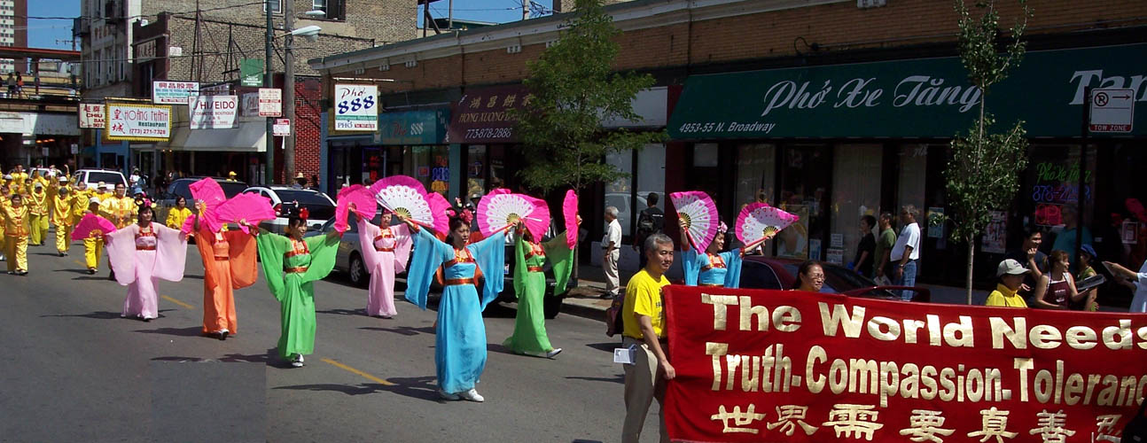 法轮功学员在芝加哥举行“法轮大法好”主题游行(图)