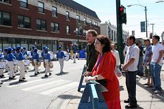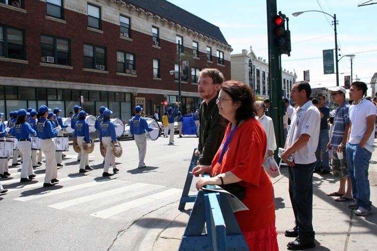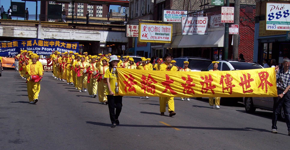 由200余名法轮功学员组成的天国乐团首次在芝加哥的南北中国城亮相。近来出现在纽约曼哈顿、华盛顿宪法大道等大型游行活动中的天国乐团引领法轮功游行队伍,他们在行进中演奏了多首雄壮的乐曲,博得了人们的关注和欢迎。