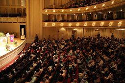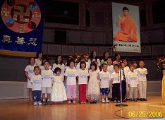 美中地区明慧学校的小弟子们也聚集一起,用他们幼嫩的声音背诵了师父的《论语》,并合唱一首大法歌曲──“插莲花”,赢得了在座大法弟子们的笑声和掌声。小弟子们最小的仅三岁半,在明慧老师和家长的帮助下,背诵下了师父的《论语》,并在法会当天,以这种方式向慈悲的师父和来自世界各地的大法弟子们汇报了小弟子们的学法情况。