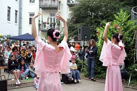法轮功学员在汉堡社区文化活动中受到欢迎(图)