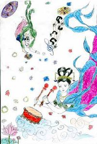 我叫笑笑,长沙市大法小弟子,今年11岁。我从6岁开始跟妈妈一起修大法,修炼后我的身心变化很大。这是我的画 《飞天》有一次,我扭了脚,当