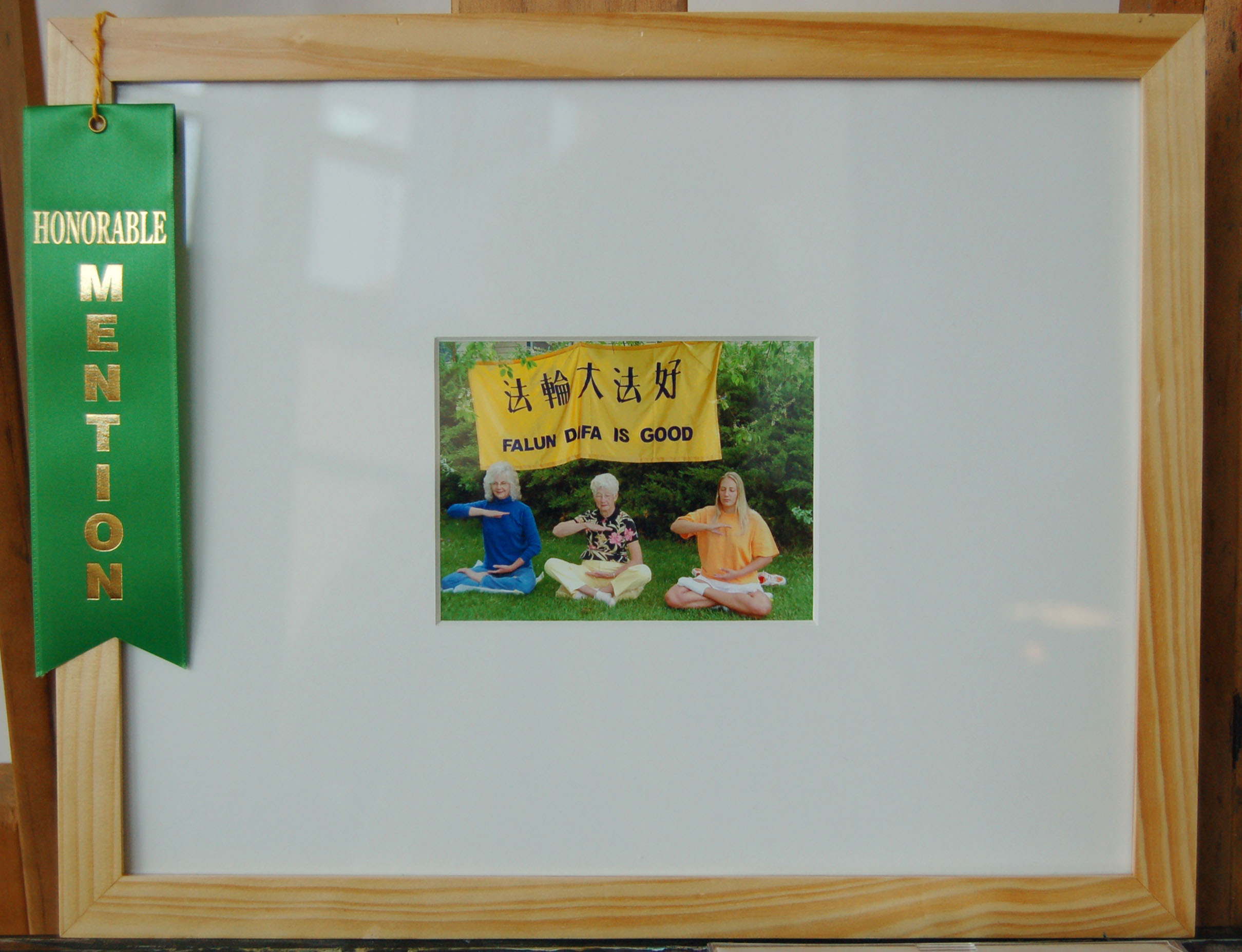 【明慧网2006年6月9日】为庆祝堪萨斯州道格拉斯郡老年人节日,当地的美国退休者协会俱乐部发起了为祝贺美国老年月活动的摄影作品竞赛。道蒂•帕克特(Dotty Puckett)提供的题为“法轮大法伴随人们美好的进入晚年生活”的摄影照片,在12位60至90岁年龄层段的参赛作品中获得缎带荣誉奖。