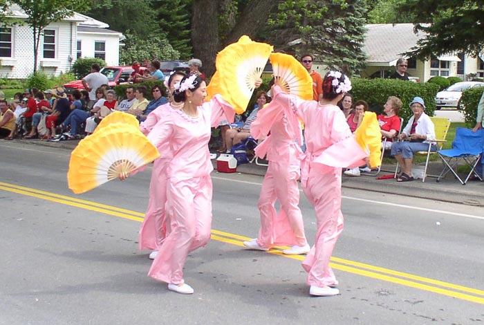 当天有近三万观众沿途观看了游行。一路上,仙女们在“法轮大法好”的音乐中翩翩起舞,用扇子组成各种造型。精美的花车上开放着学员自作的大莲花,每一朵莲花里坐着一位小弟子。