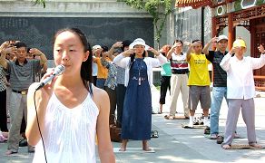 瑞典游客支持法轮功 谴中共迫害