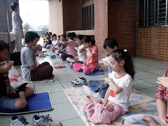 台湾台北县树林于2006年初成立明慧学校,今年暑假第一次举办夏令营,两天一期的活动中内容丰富!来参加夏令营的法轮大法小弟子们有远从新店、板桥、台北来的,也有树林当地的小小法轮功学员,年龄最小的才幼稚园,有的还没读过《转法轮》,但是集体学法时大家都大声朗读,非常专注喔!除了学法之外,还安排了影片欣赏课程,两天时间里一共看了“小蜡烛的光”、”揭开史前文明的面纱”、”红眼石狮的故事”、”悠游自在──仓颉的眼泪”四部短片。