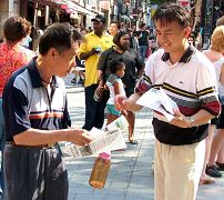 “这不是器官移植问题,也不是个别犯罪的问题,这是涉及至少数以千计善良的法轮功学员被强行从活体上摘取器官的问题,这些人被摘取肾脏、肝脏、心脏、眼角膜等之后,被毁尸灭迹。”何女士不断的向过往的人群介绍着。