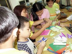 在劳作的单元里,安排了做莲花书签、纸鹤和小星星,一朵朵漂亮的莲花书签是要用来送给有缘人的;愿记住“法轮大法好,真善忍好”,相信所有幸福也都会跟着来喔!