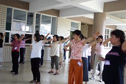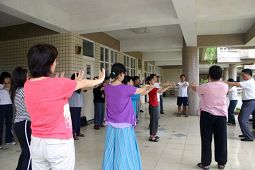 活动当天还安排教功,虽然天气酷热,但教师们认真学炼、法轮功学员们热心的教功,为酷暑增加一份沁人心脾的祥和画面。此外,当天活动结束前20分钟,还安排不同年龄层的法轮功学员上台分享修炼心得,他们以生活的实例分享如何以真善忍为指导,修去名利情等执著的过程,让与会的老师朋友们对法轮功有更深一层的认识及了解,很多教师表示,明天一定还要来参加!