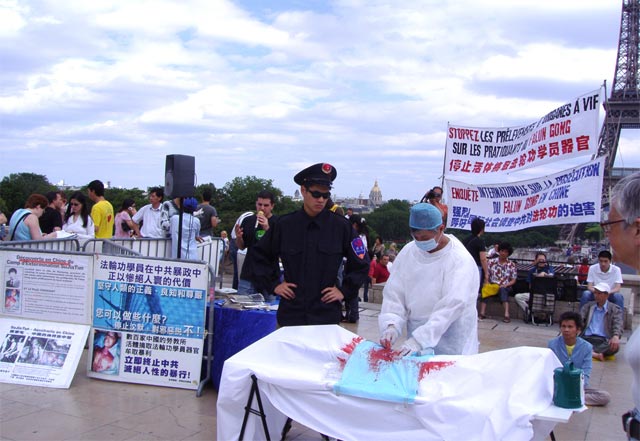 ![]() 在巴黎人权广场揭露中共活摘器官盗卖的罪行 |