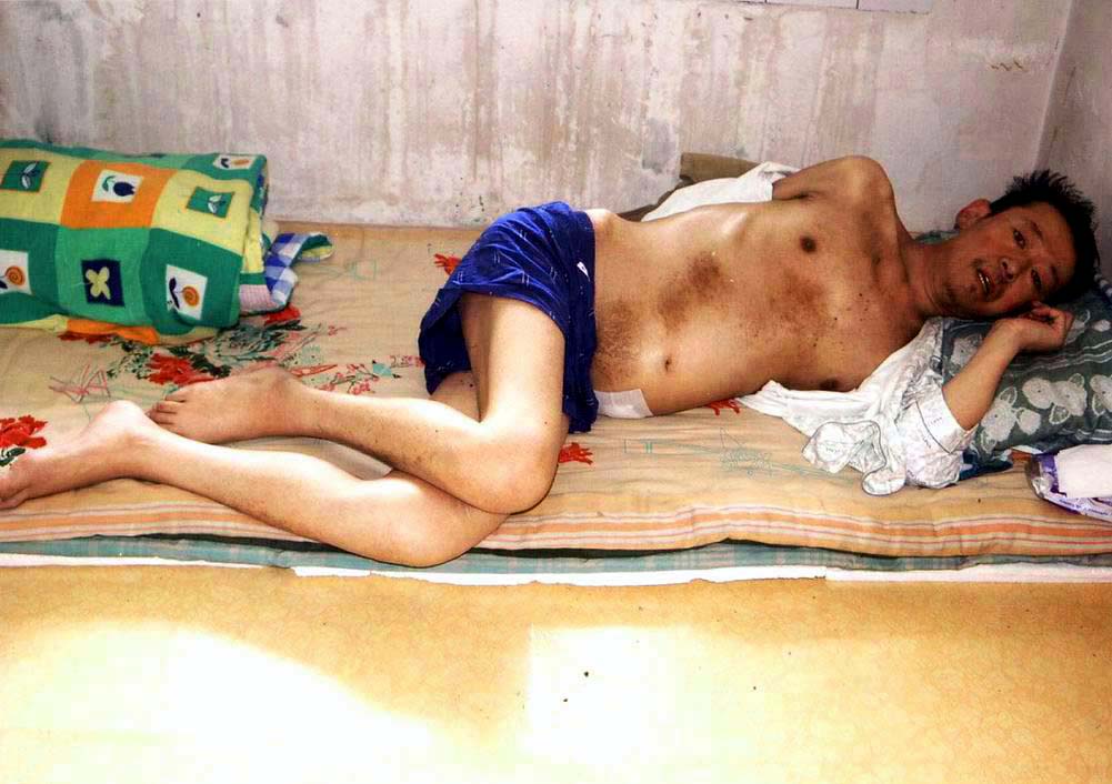 ![]() 辽宁学员高蓉蓉遭狱警电击, 面部严重毁容 | ![]() 大陆学员张忠原体重140多斤, 被折磨得只剩一副枯骨架 |