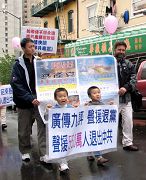 张亮(左)在声援中国民众退出中共邪党的活动中