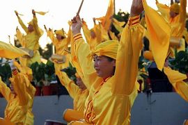 这三场精彩的演出不但为大会带来了高潮,也将法轮功修炼者所遵循的“真善忍”带给大家。“法轮功”又称为“法轮修炼大法”,14年前,由李洪志先生在中国传出,14年来修炼者超过上亿人,洪传世界80多个国家,李洪志先生以“真善忍”的法理,净化了人们的心灵,使修炼者远离了身心困顿的痛苦,给人们指明了一条修心向善、返本归真之路。