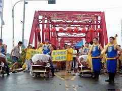 2006年7月7日的大桥文化节,一群法轮功修炼者应邀参与表演,展现出修炼大法的美好,他们的表演包括了腰鼓队、西洋鼓队、功法表演以及新唐人旗鼓队。