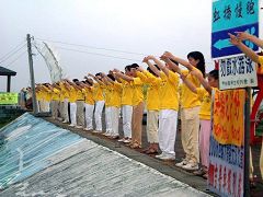 ![]() 在西螺大桥大舞台炼第五套功法 | ![]() 在西螺大桥河堤炼动功 |