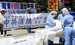 法轮功学员旧金山中国城呼吁制止中共暴行(图)