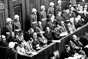 ![]() 纽伦堡大审判时,接受审判的德国战犯 |
