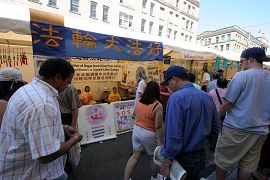 法轮功学员在中国城夏日庆典上的真相资料展位