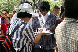 一位名叫David Destardins的西人,签完名后对学员说:“能不能给我一些寄给总理的明信片,我拿到那边去给那些排队的人签?这种迫害必须人人来制止。”经学员同意,他拿了一叠明信片到人群中去征签。他征签完回来交给学员后说:“请再给我一些明信片,我拿回去给我的亲人和朋友签,我一定会马上寄出去的。”