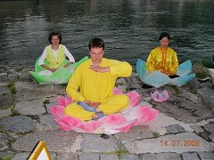 2006年7月14日晚,德国南部城市帕索举行艺术节,法轮功学员们也借此机会办了法轮大法真相图片展。