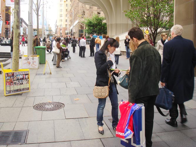 自中共活体摘取法轮功学员器官的恶行被曝光后,为了呼吁更多澳洲民众帮助制止中共恶行,法轮功学员广传真相,并征集签名;期间,很多民众在听说后,都非常震惊,不敢相信这个星球上怎么会发生在这样的事情。人们纷纷想要深入了解真相,很多人签名支持法轮功。