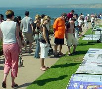 2006年7月15、16两日,美国南加州圣地亚哥部份法轮功学员在风景秀丽的拉荷亚和历史悠久的旅游胜地巴博雅公园向当地民众和观光游客曝光中共活体摘取法轮功学员器官的暴行,向社会各界人士征集签名,呼吁彻底结束中共政权对法轮功学员的残酷迫害。
