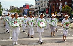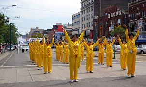 当天的气候炎热,气温高达36摄氏度。游行队伍包括多伦多天国乐队、悼念被迫害致死的法轮功学员、揭露迫害及活体摘取法轮功学员器官的罪行、反迫害及法轮功功法等方阵。参与者胸前佩戴白花,神情肃穆。