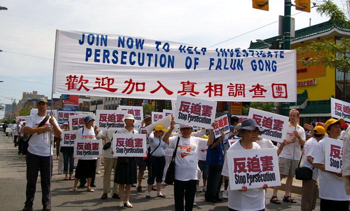集会之后,超过500名法轮功学员及各界民众开始了以反迫害为主题的游行。游行经过多伦多市中心及唐人街。