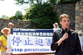 曾经获得新加坡教育部奖学金在南洋理工大学留学的法轮功学员熊先生在新闻发布会上说,他在新加坡学习期间,只因为在一个新年夜,在公园里默默地悼念被中共迫害致死的法轮功学员就被新加坡当局逮捕拘押,奖学金和签证被取消。中共大使馆官员在法庭上公开扬言说要把所有这15名法轮功学员引渡回中国,后来因媒体报导,在国际社会的帮助下他来到美国。