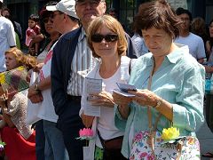 ![]() 观众愉快的观看游行 | ![]() 观众阅读真相材料 |