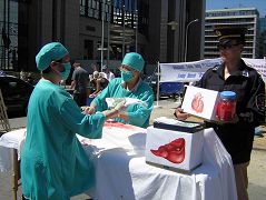 加拿大蒙特利尔法轮功学员于2006年7月18日下午4:00至晚上8:00,在中国城中山公园摆放九评展板、举行集会,揭露中共的邪恶本质,抗议中共长达七年之久对法轮功的迫害,呼吁各界人士强烈谴责中共的暴行,彻底结束对信仰真善忍的法轮功学员的灭绝人性的迫害。