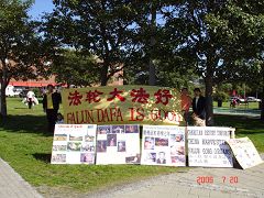 2006年7月20日下午2点,挪威博德市法轮功学员,来到市政厅对面的空地上举办活动,曝光中共迫害法轮功的暴行,呼吁社会各界关注并帮助制止发生在中国的迫害。