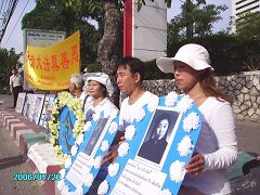 2006年7月20日下午,泰国法轮功学员来到中使馆前,抗议中共对法轮功长达七年的迫害以及活摘法轮功学员器官暴行。
