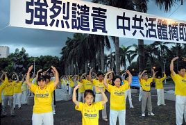 2006年7月20日晚,近二百名屏东法轮功学员在文化局前集会,强烈谴责中共对法轮功长达7年之久的残酷迫害,呼吁国际社会伸出正义之手,共同制止中共活摘器官的反人类暴行。