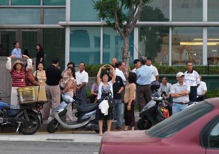 台北101大楼商区近期成为新兴观光点,尤其从顶楼可不同角度鸟瞰整座台北市,游客有来自台湾各地、大陆地区及世界各地区的。20日下午陆续汇集了许多法轮功学员,身着黄杉整齐的炼功队伍,一下吸引了民众的目光,许多人驻足观看,有人想深入了解什么是法轮功,有人在对边也炼起动作来,有人按下快门摄下难得的镜头。
